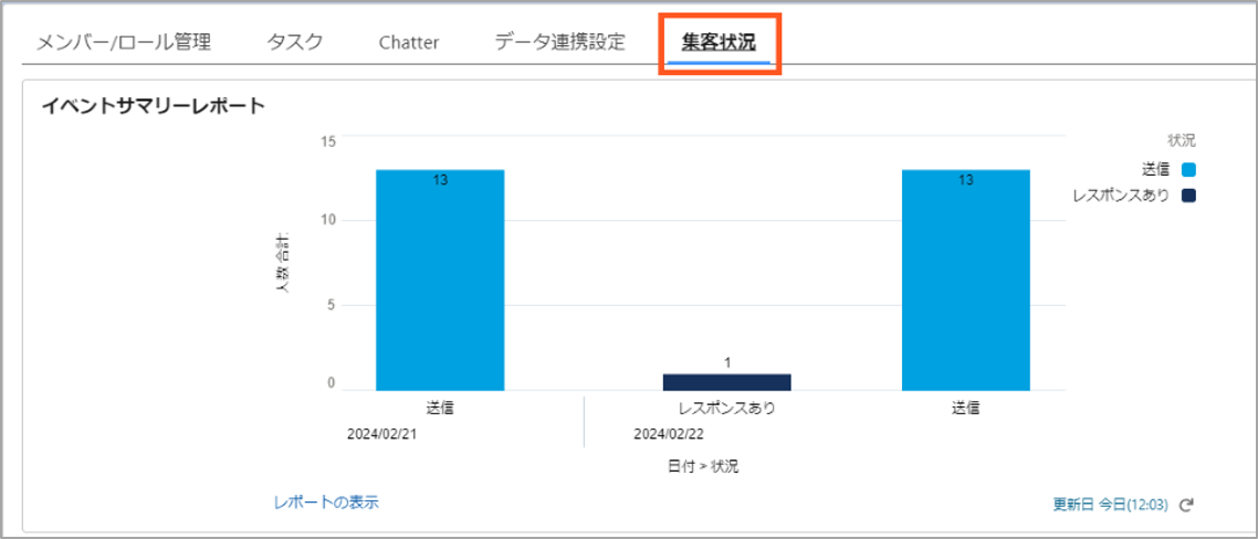 - Pardotと連携し、キャンペーンの集客状況を確認することができます。
