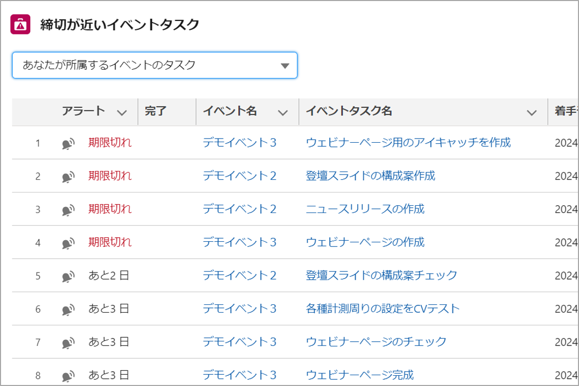 - イベントに紐づくすべてのタスクを表示したり、自身が担当のタスクを表示したりとビューを切り替えて表示できます。