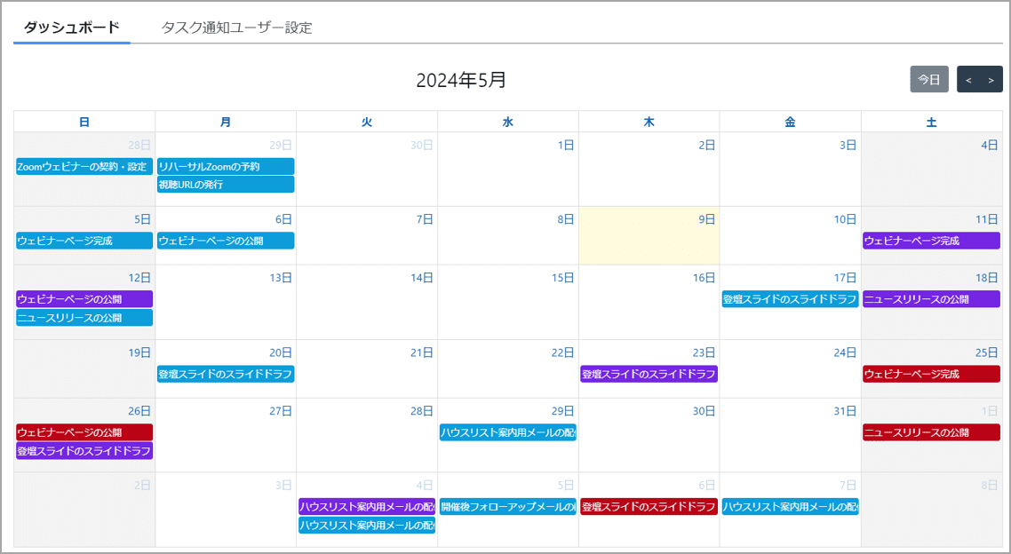 - カレンダー形式で所属するイベントのタスクが一目で確認できます。