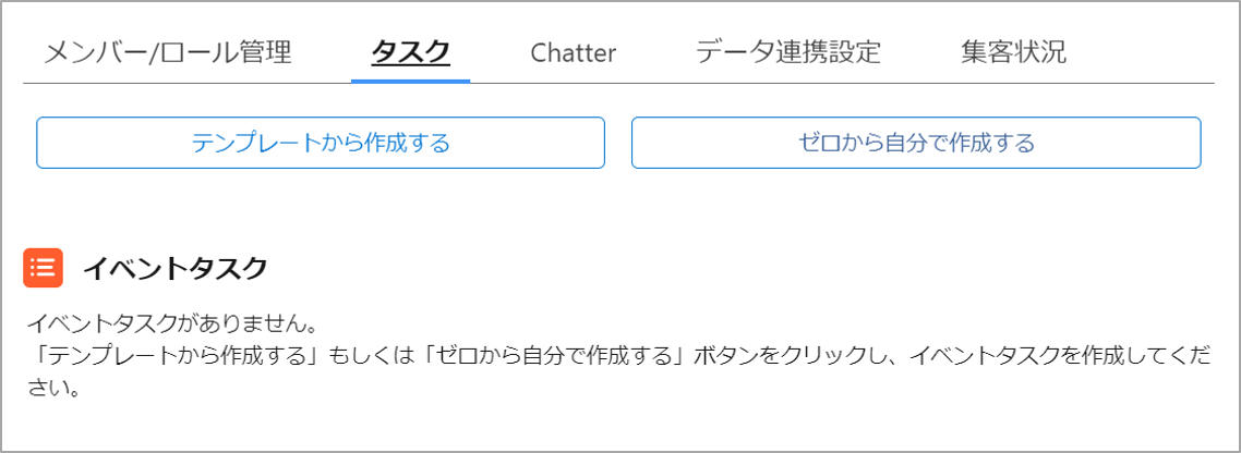 - イベントのタスクは標準のテンプレートまたは独自で作成したテンプレートをもとに作成できます。