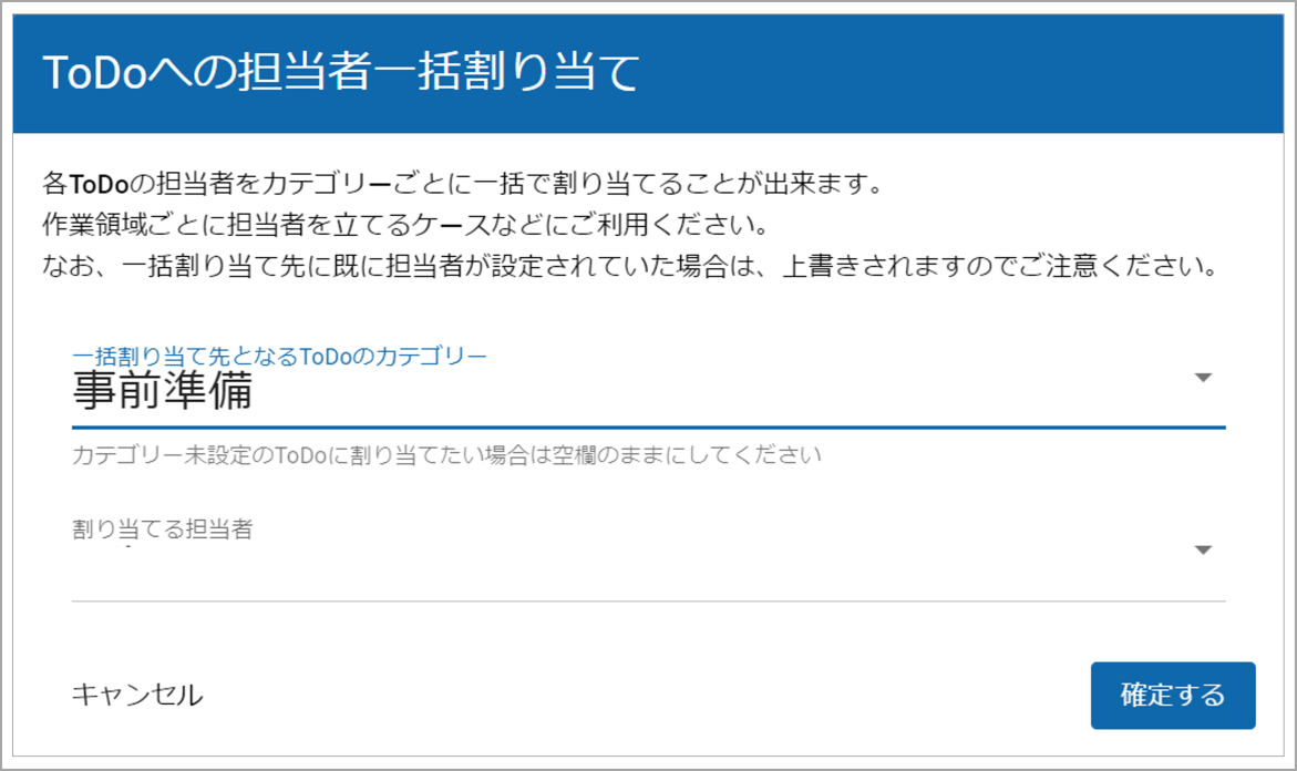 - 【SaaS版】担当者一括設定より、カテゴリごとに担当者を一括で設定可能です。